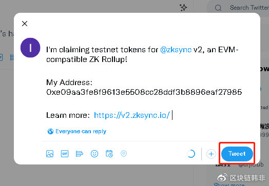 然后去点赞转发 推特,并回复你的测试地址