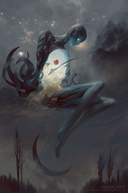 早在 2005 年,我发现在多个神话中都有成千上万的被命名的天使。从那以后我就被迷住了,Angelium 每天都成为我生活的一部分。即使我不注意它,它也会在互联网上消失并拥有自己的生活。该项目的名称已经定义了超现实天使形象的概念,它周围的粉丝群激发了我继续为它创造新设计的灵感。(Peter Mohrbacher)