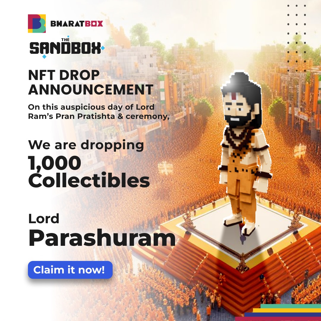 2️⃣ Historic Launch! To commemorate the Ram Mandir inauguration, @TheSandboxIndia, alongside Madhu Mantena & Mythoverse Studios, dropped 1,000 exclusive LORD PARASHURAM NFTs last week.