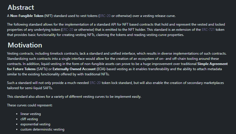 •ERC5725 allows the creation of NFTs that vest tokens - @0xRamenUmai