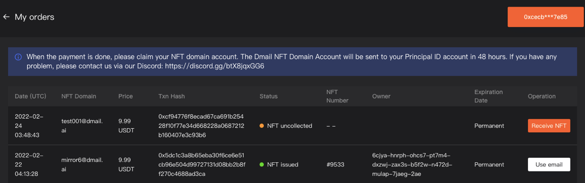 11. 收到NFT后,可在测试网或主网上线时使用,之前只能使用demo。https://pyr3m-ciaaa-aaaai-qasua-cai.ic0.app/#/mails/create