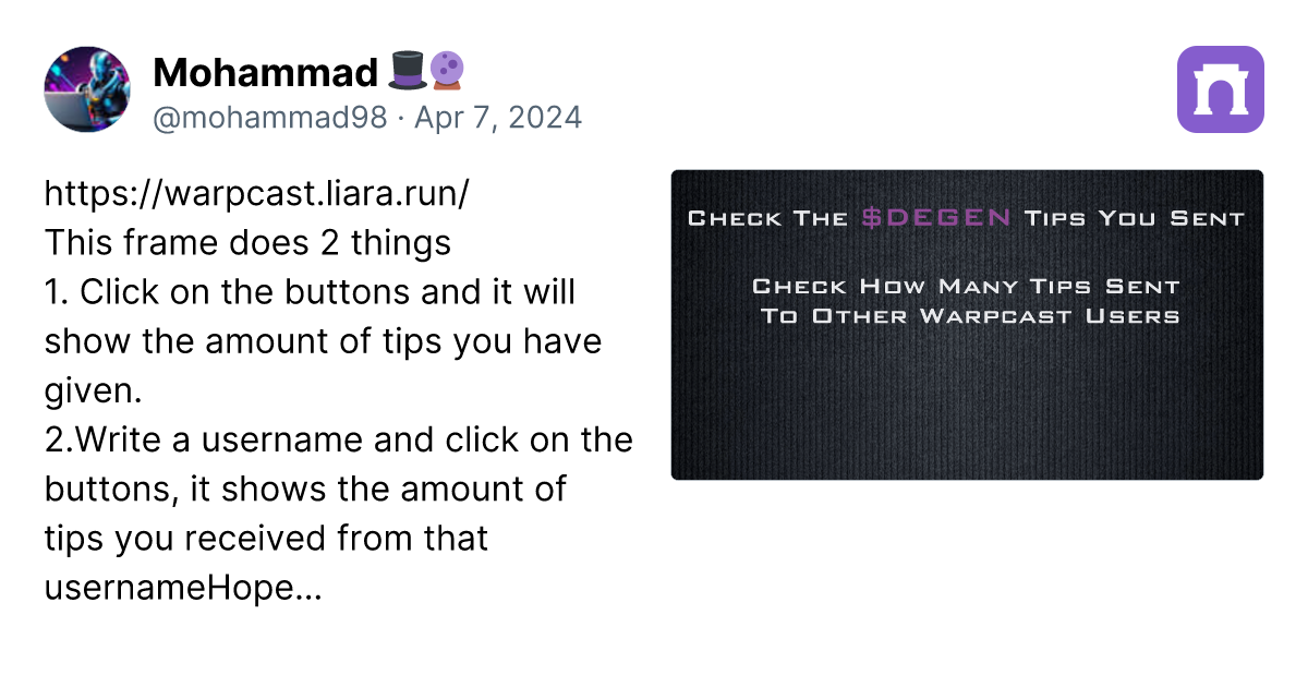 Count $DEGEN tips : そのcastに対してどれだけDegenがチップされたか