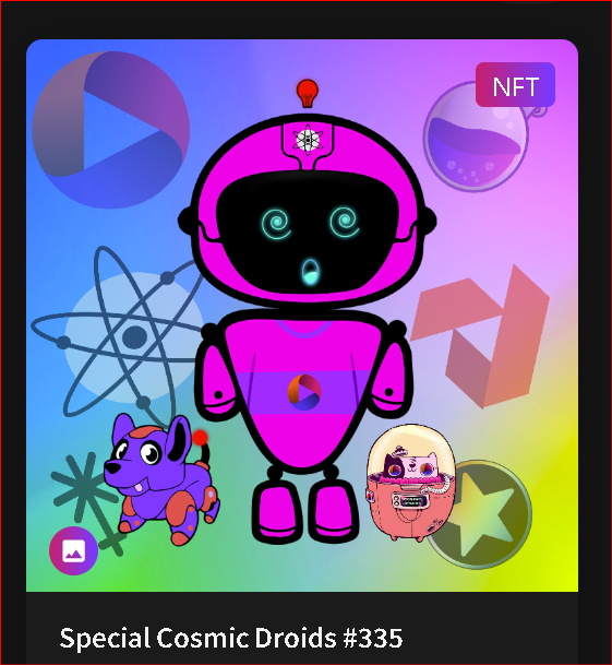 The holders of Cosmic Droids NFTs were dropped Special Cosmic Drops NFTs, with the art work of a droid & two pets.