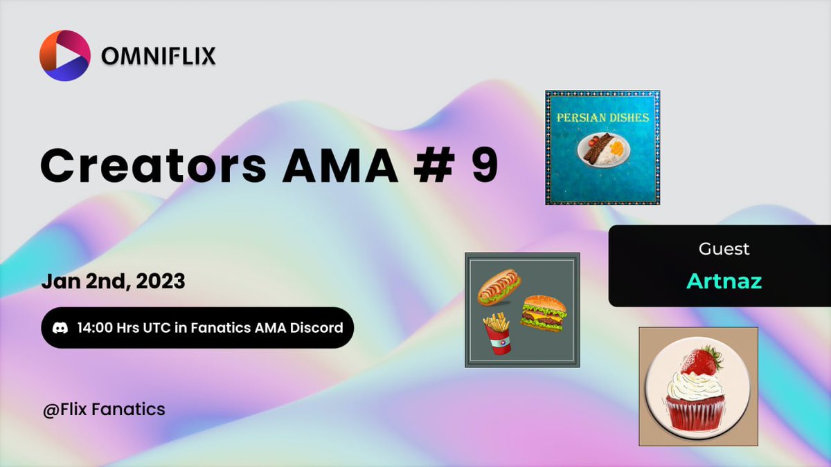 Creator AMA #9 with @Artnaz Last week the Flix Fanatics team had @ArtNaz, a genesis creator, artist and owner of Artnaz Virtual Coffeeshop on OmniFlix Network, for the weekly Creator AMA. Artnaz shared insights about her journey to Web3, balancing work-life & art and some alphas about upcoming additions to her food themed collection series.