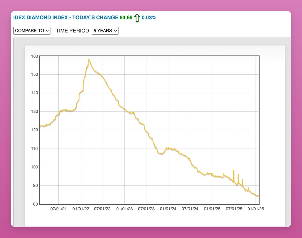 the chart shows diamonds falling from ~160 in 2021 to ~85 in 2026.