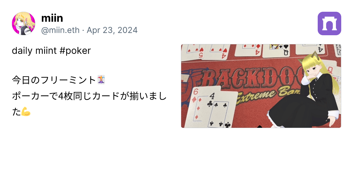 以下のリンクからDEGEN(L3)のNFTとしてフリーミントできます(上限500枚)