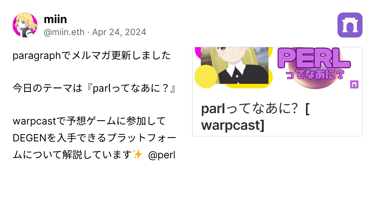 出題があるPerlのアカウント:https://warpcast.com/perl