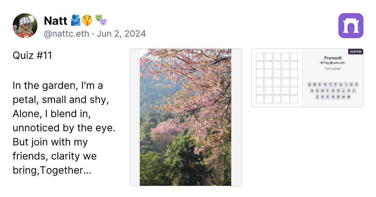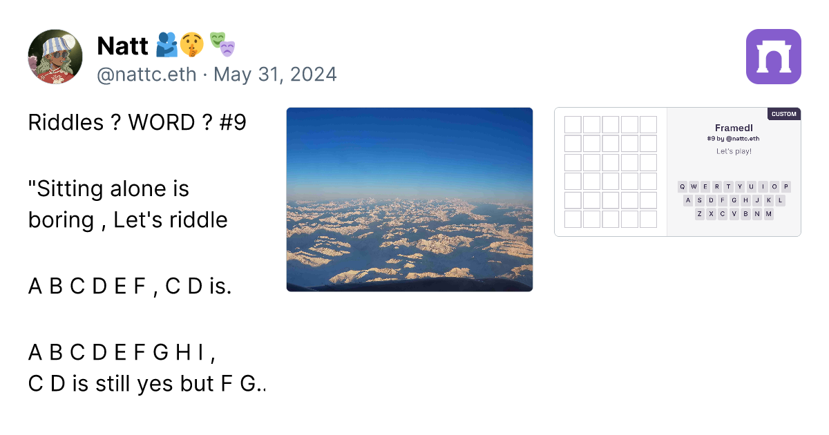 From all 90 riddles till now , I think all of this selection are the best of mine. try it !Farcasternattc.framedl.eth π«β‘οΈ on WarpcastThe...