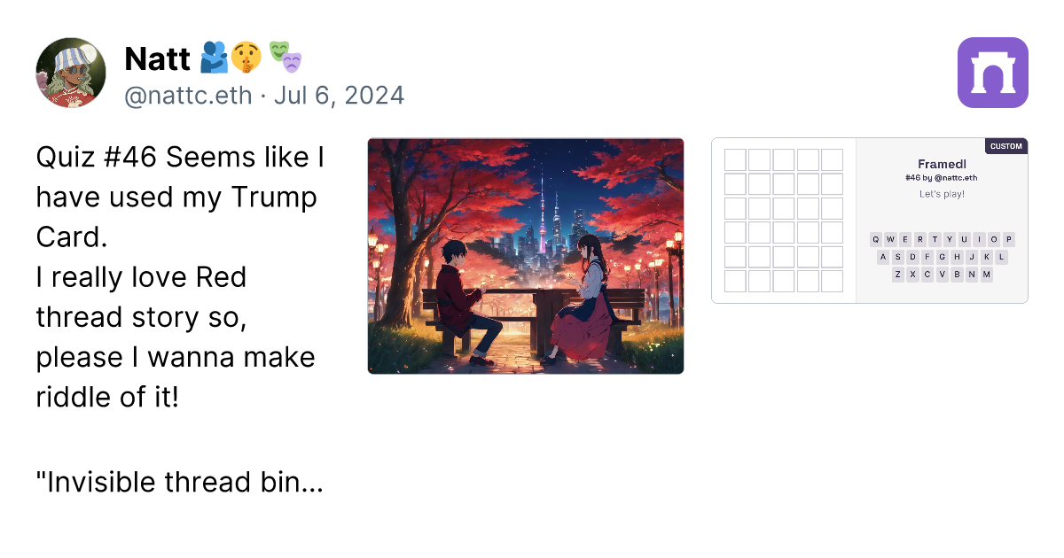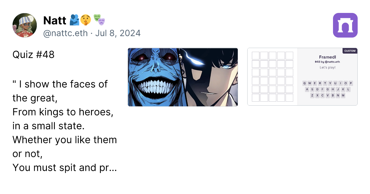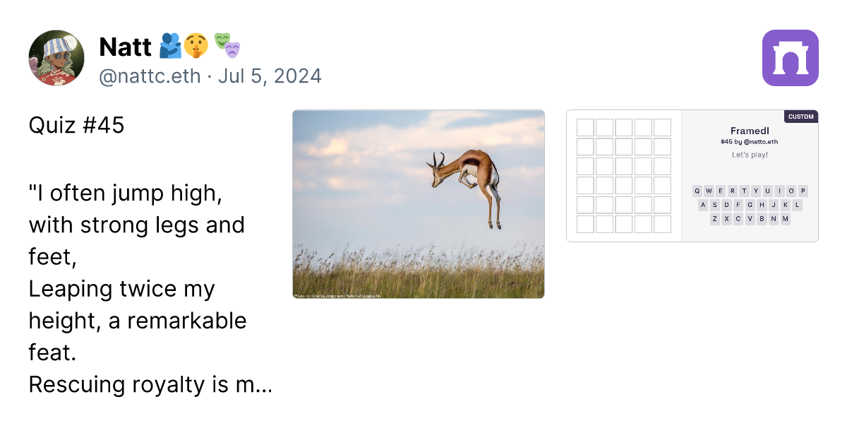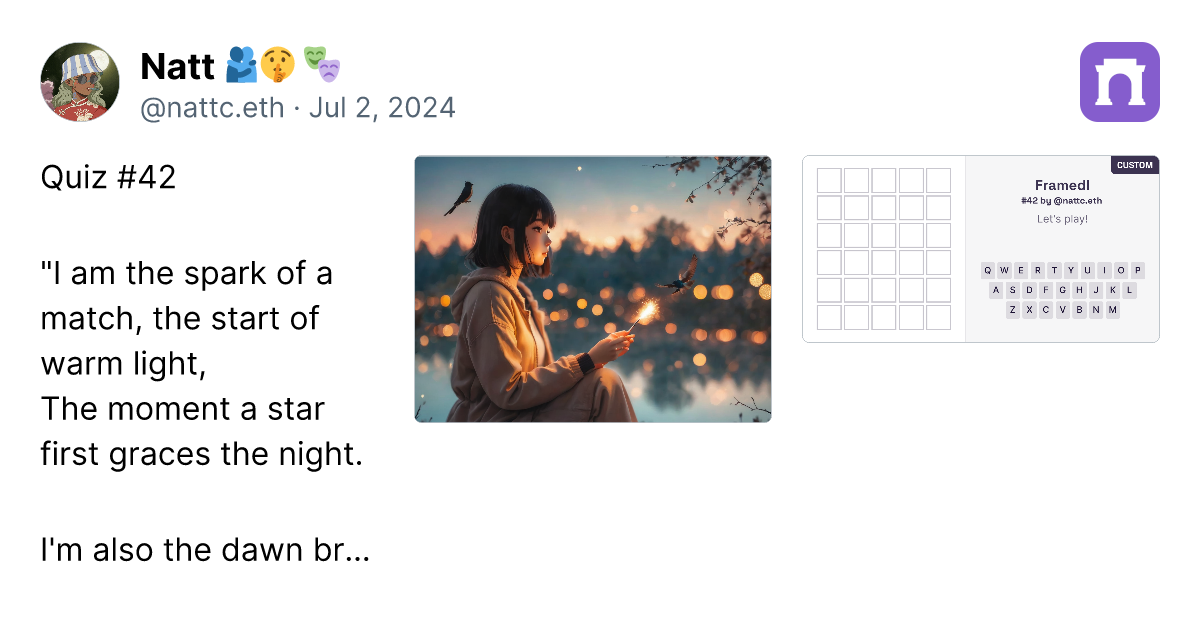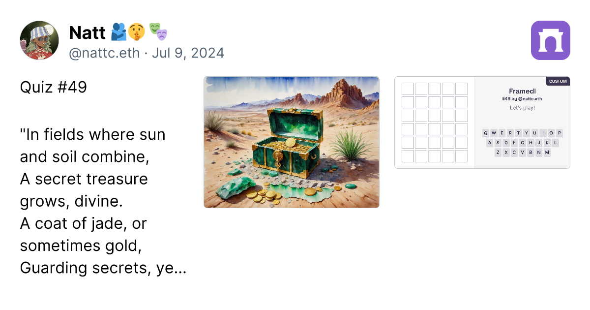 From all 90 riddles till now , I think all of this selection are the best of mine. try it !Farcasternattc.framedl.eth ๐ซโก๏ธ on WarpcastThe...