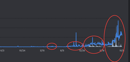 项目进入FOMO阶段(Fear of missing out 害怕错过心理)。但这种炒作趋势是不会持续的。炒客或者巨鲸这个时候会加大卖出的力度。