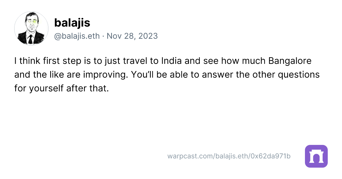 But last weekend, something really crazy happened: PM Modi QT a post by Balaji discussing how it's +EV to invest in India.