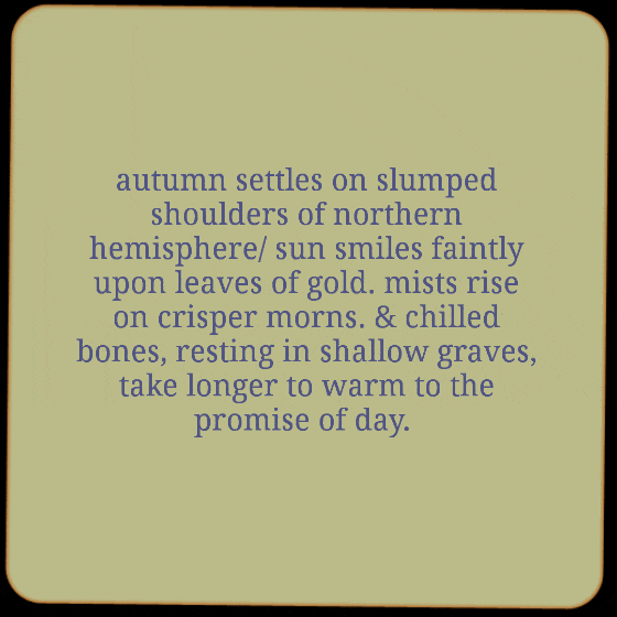 autumn settles A melancholic take on the season of autumn, which always leaves me feeling sad.