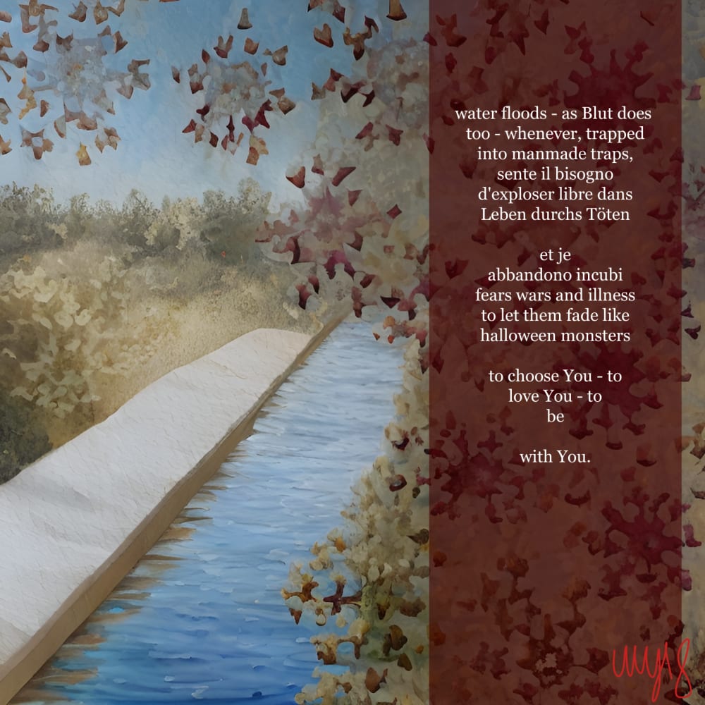 huggin' You a poem to seek and find our fundamental connection: life! the background image is done with AI and is meant, through a text-prompt, to introduce, to accompany, and to let the poem go with the reader in our daily world.