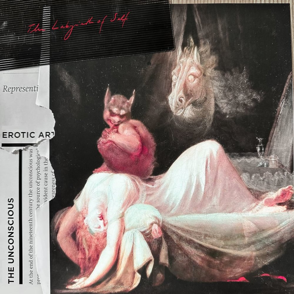 Labyrinth of Self Minted on the occasion of the Psyche/Nexus group exhibition organized by "The Collective", Step I, 2023. .・゜✧﹒☁﹒✧゜・. Spoken Word + Animated Image of *The Nightmare* (1781) by Swiss artist Henry Fuseli. Fuseli's oil painting has captured the imagination of many art critics, in part because it foreshadows Jungian ideas about the collective unconscious only articulated in the early 20th century.