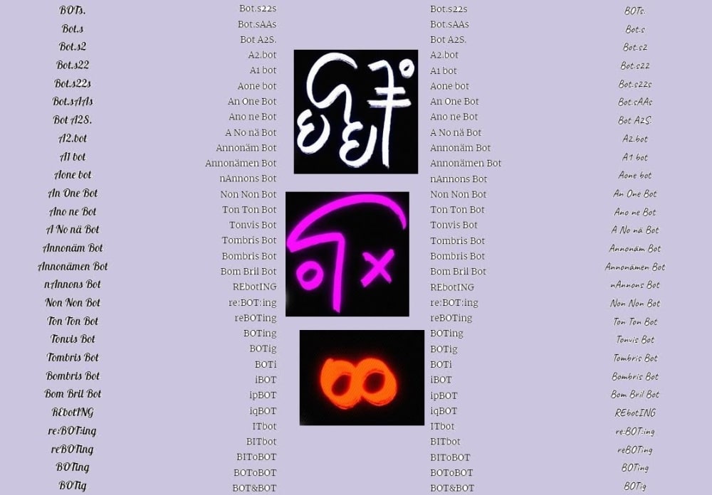 BOTing it The background in this CryptoArt from ※ Bots without Boots ※ an OnGoingPoem af bARdisT MrZ ✒ a VisualPoetry / ExperimentalPoetry / PatternPoem 連句 MrZ.LennArrrt.xyz & www.janos.se/bot ※ Some of the letters in this ArtWork comes from The Unconscious Alphabet, created by The Philosopher, Rio de Janeiro / Macapá, Brazil Find it in this NFT ~ https://zeroone.art/artwork/license-to-holders--unconscious-alphabet-0498 All the 25 letters of the The Philosopher's Unconscious Alphabet and also some of the important letters from the logic language (1st order predicate logic with identity), basis of all argumentative thinking.