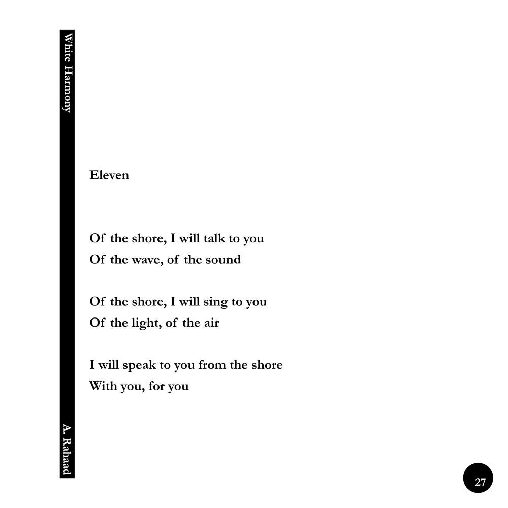 White Harmony / Eleven © ------------------------------ Original Persian Poem: یازده از کرانه با تو حرف خواهم زد از موج، از صدا از کرانه با تو آواز خواهم خواند از نور، از هوا با تو خواهم گفت از کرانه با تو، برای تو --------------------------------- English Version of Poem: Eleven Of the shore, I will talk