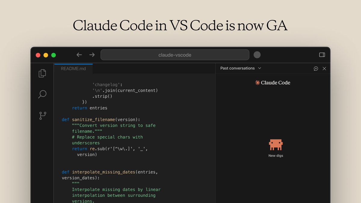 3 | Anthropic Launches Claude Code Visual Studio Code Extension for All Developers The extension brings Claude Code's full powers—understanding codebases, planning tasks, generating code, fixing bugs, and running workflows—directly into Visual Studio Code with features like inline diffs, @-mentions, slash commands, and plan reviews. This release promises big productivity boosts for VS Code's huge community. |