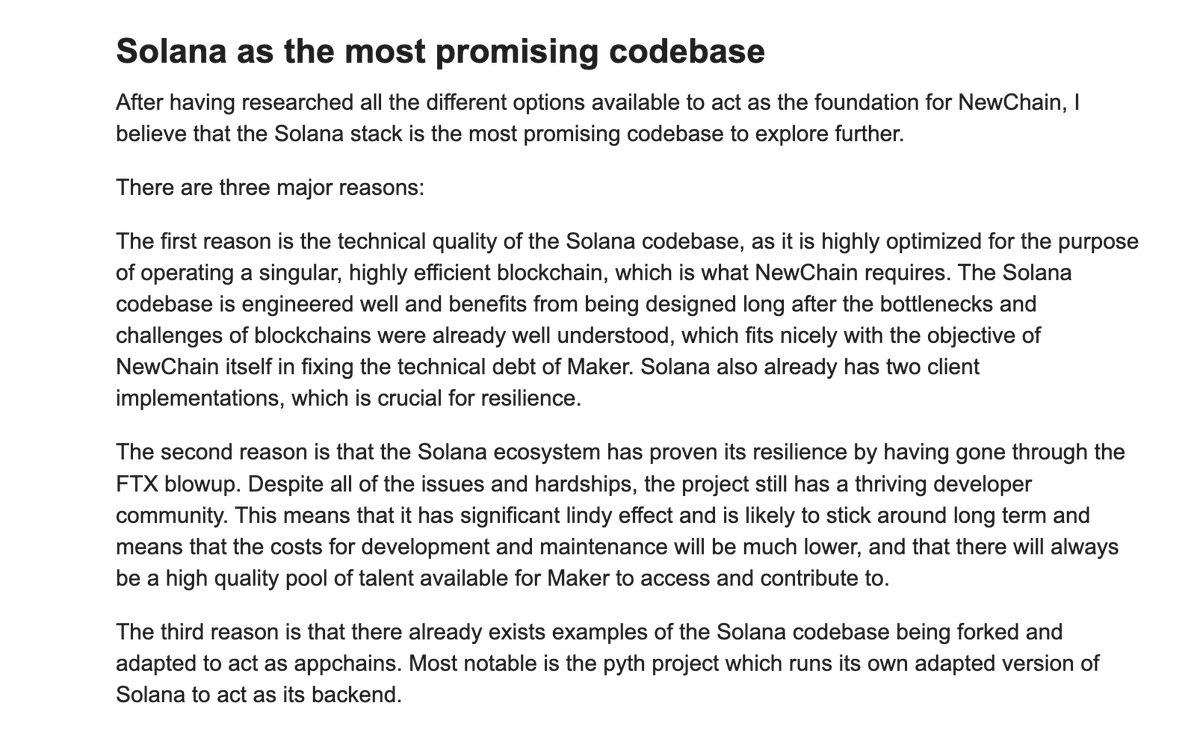 Solana's software is really well-made and fast, which is what Maker's NewChain needs to be.